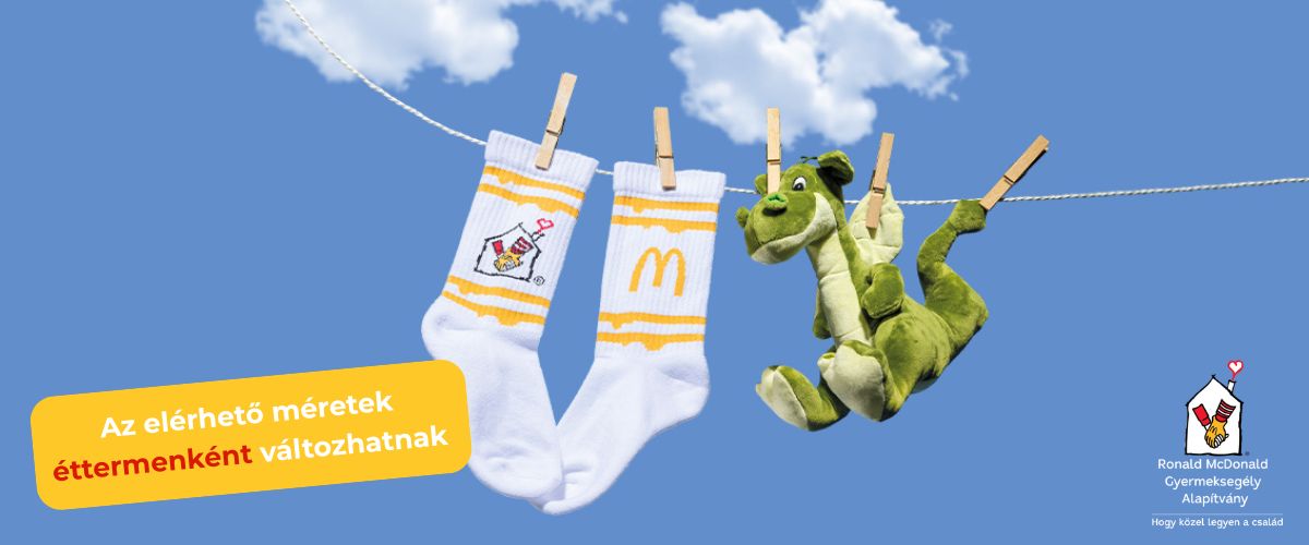 Vásárolj egy trendi Mekis zoknit és támogasd Te is a Ronald Házakat és a Családközpontot, ahol a beteg gyermekek szüleik ölelő karjaiban gyógyulhatnak.